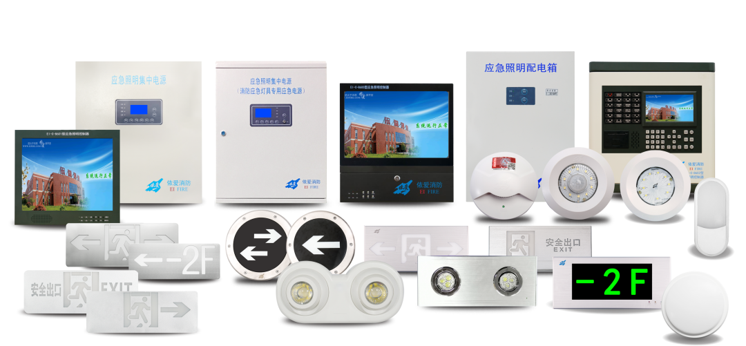 依爱消防应急照明和疏散指示系统主要包括应急照明控制器、应急照明集中电源、应急照明配电箱、集中电源集中控制型消防应急标志灯具、集中电源集中控制型消防应急照明灯具等产品。